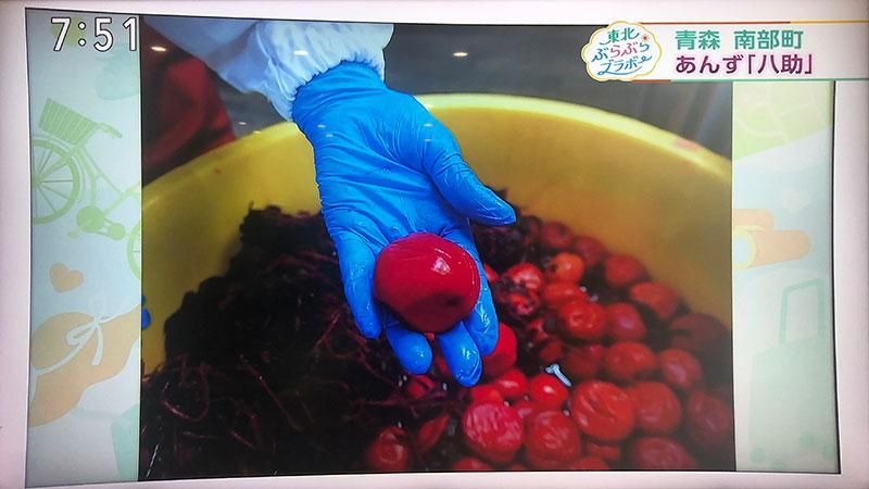 日本テレビ「秘密のケンミンSHOW」の、ひみつのごちそうコーナーの「青森県南部町の杏の梅漬け特集」スタジオ大試食に、弊社の「八助のしそ漬け」が使用されました。